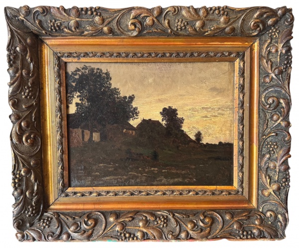 • Charles François DAUBIGNY (1817-1878) - oléo s/ madeira, "paisagem Casario", medindo: 26 cm x 34 cm e 50 cm x 42 cm