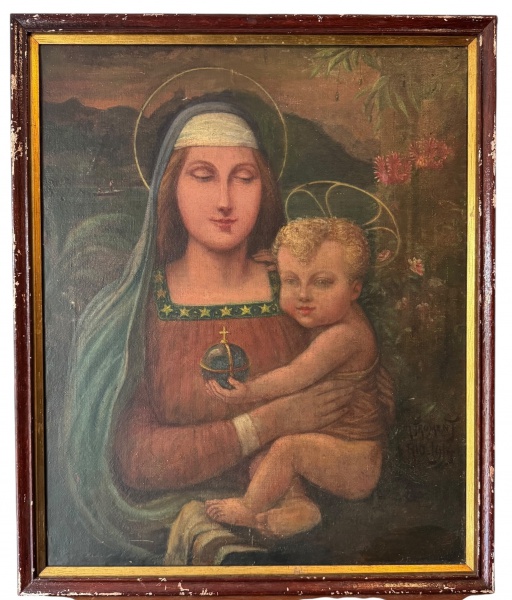 • FROMENT ??? assinatura ilegível, oleo s. tela "Virgem Maria e menino Jesus", medindo: 61 cm x 50 cm e 55 cm x 66 cm
