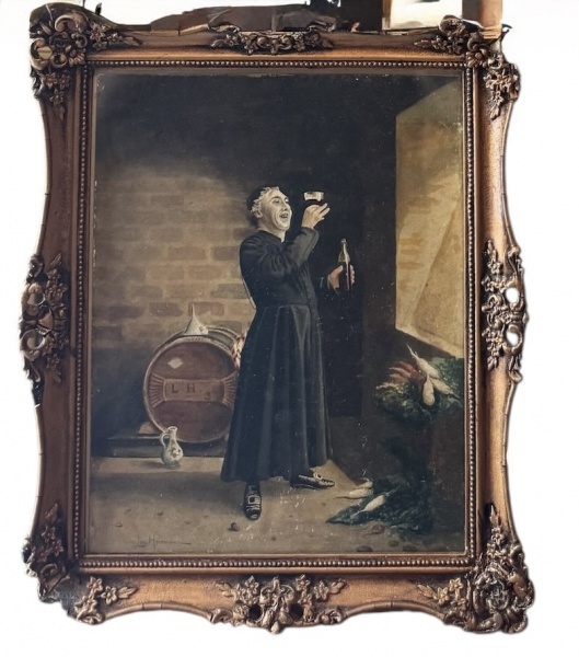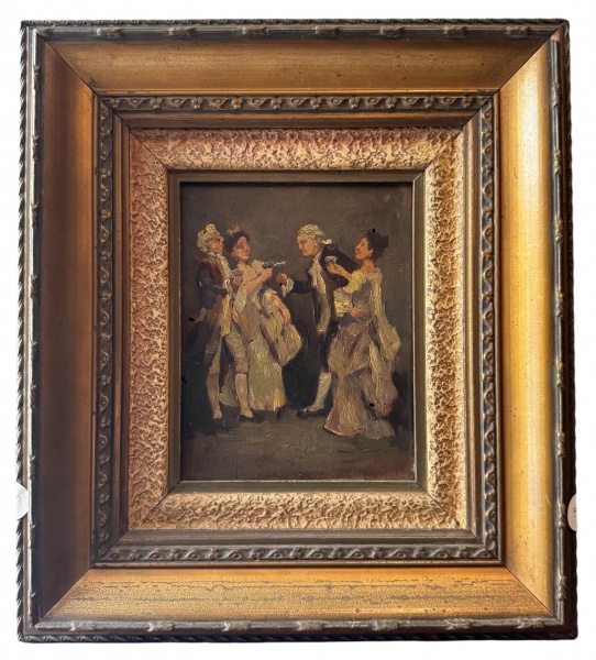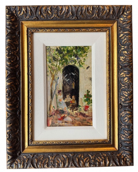 • Pintura europeia, assinatura ilegível, precisa restauro, medindo: 26,5 cm x 35 cm