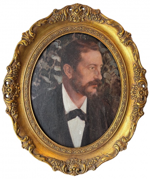 • Pintura europeia, assinatura ilegível, "figura masculina", oleo s/ tela, medindo: 48 cm x 38 cm e 59 cm x 69 cm