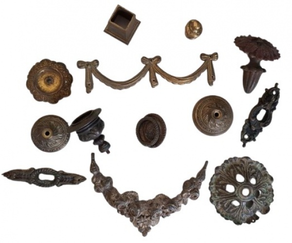 • Lote com 13 (treze) acabamento de metal para móveis e lustres antigos.