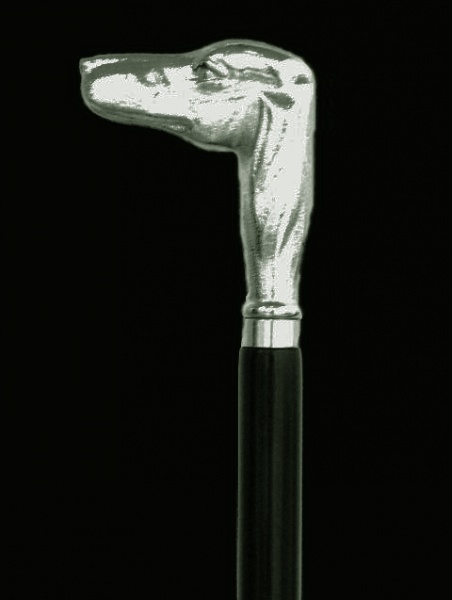 • Bengala de madeira com cabo em metal cinzelado trabalhado.