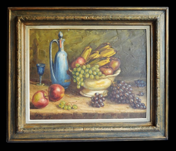 • B.POLONI - Natureza Morta, óleo sobre tela, 1955, assinado e ricamente emoldurado. Medida da pintura 50x65cm e com moldura 73x88cm.