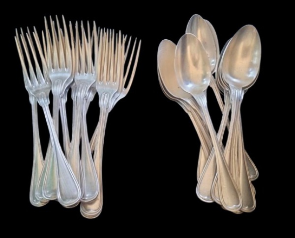 • CHRISTÓFLE - Lote com 24 talheres da renomada Christófle, sendo 12 grafos e 12 colheres de sopa. VEJA FOTO EXTRA.