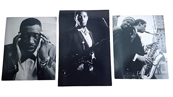 • Lote com três reproduções em papel fotográfico de Grandes Mitos do Jazz. Medida da maior 30x20cm.