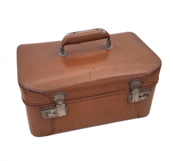 • Antiga valise em couro com elegantes pespontos externos e alça e fechos em metal. Medida 30x19x15cm. Peça integra, que apresentas pequenos desgastes do tempo.
