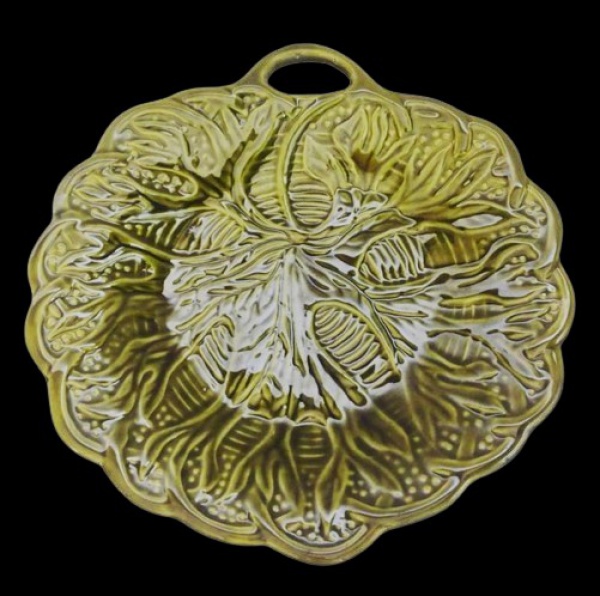 • Belíssima travessa trabalhada em porcelana com rica cor verde. Medida 29 cm de diâmetro.