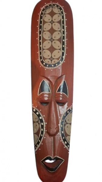 • Grande máscara esculpida em bloco de madeira com requinte de entalhes e policromia. Medida 50 cm.