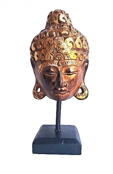 • Bela escultura de Buda em madeira em base também de madeira. Medida 30 cm de altura.