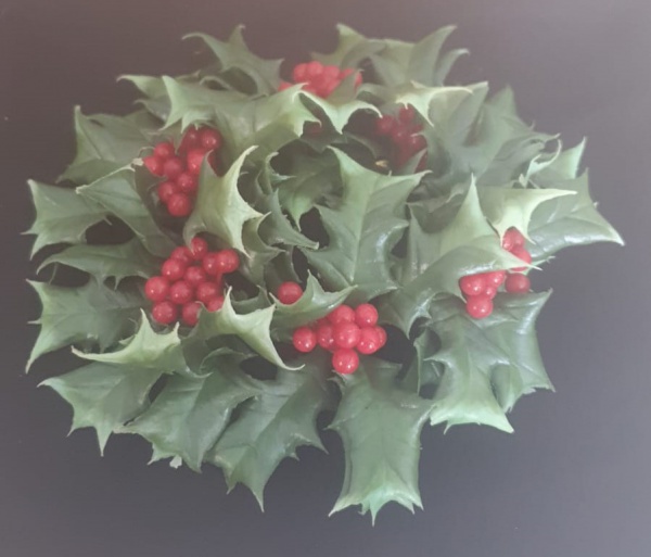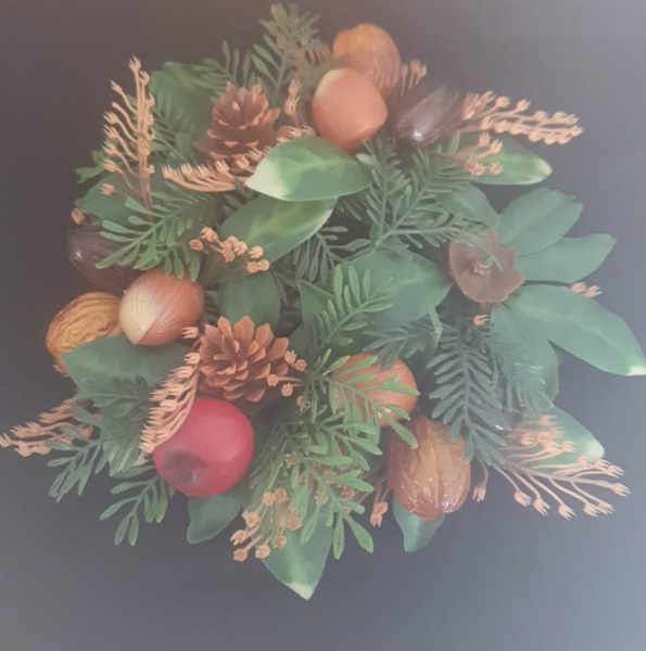 • Centro de mesa vintage de Natal com visco, azevinho e frutos silvestres, coroa de velas.
