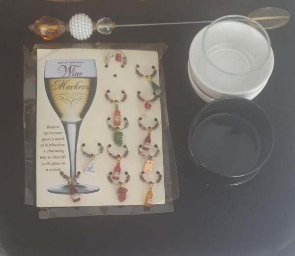 • Lotes com potes em cerâmica, marcador de taças e  um misturador.