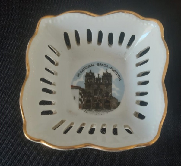 • Souvenir em porcelana formato de cesta Catedral Braga Portugal - Medidas: 8x8x4 cm