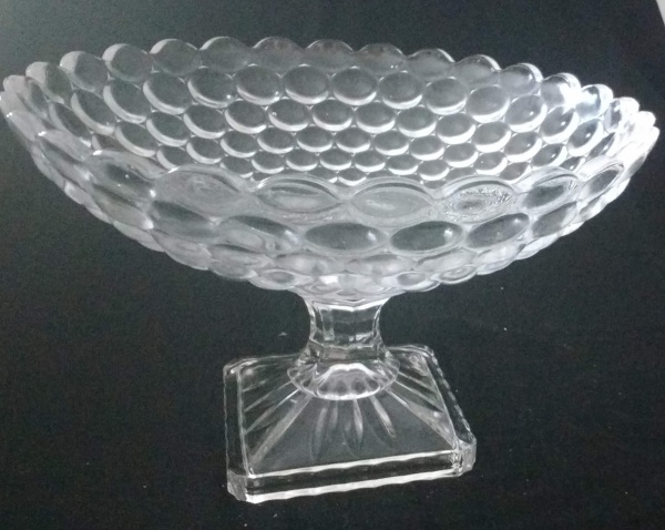 • Fruteira em vidro grosso com decoração em bolas em alto relevo - Diâmetro: 30 cm Altura : 21 cm - Lote com lascado interno na base