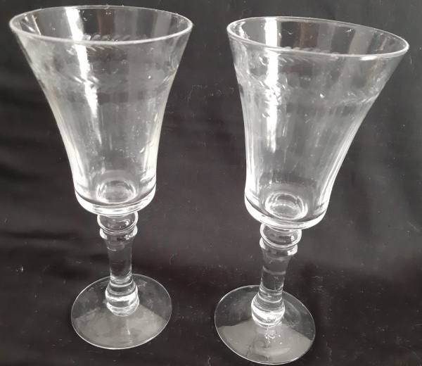 • Duas taças de pé alto com acabamento em lapidações e corpo trabalhado - Altura: 21 cm
