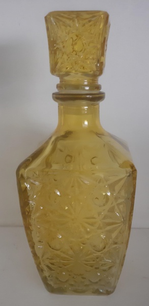 • Licoreira de vidro amarelo toda trabalhada, Altura: 25 cm