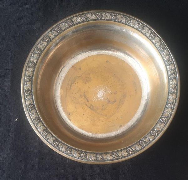 • Antigo bolw em prata 90 EBERLE , belíssimo desenhos nas bordas em uvas e folhagem- Diâmetro: 15 cm e Altura; 4 cm - no estado