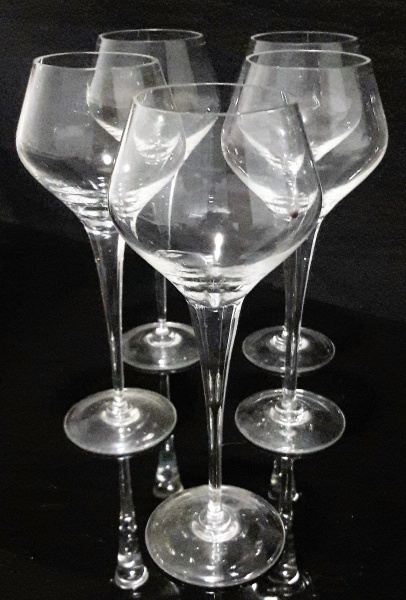 • Cinco taças para vinho executados em cristal - Diâmetro: 7 cm e Altura: 24 cm