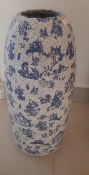 • Elegante vaso alto em cerâmica , inspirado na rica tradição de Macau, é uma peça única que combina o charme rústico com a sofisticação dos detalhes orientais. Suas nuances de azul, sutis e delicadas, realçam a beleza dos intrincados desenhos orientais, oferecendo um toque de história e arte ao seu ambiente. Ideal para adicionar um toque de elegancia. Altura: 49 cm