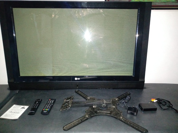 • TV LG 42 polegadas, analógica, codificador, suporte para parede, controles remotos, sem som, é necessário usar caixas de som sobre salientes, Medidas: A 69cmx L 113cm.
