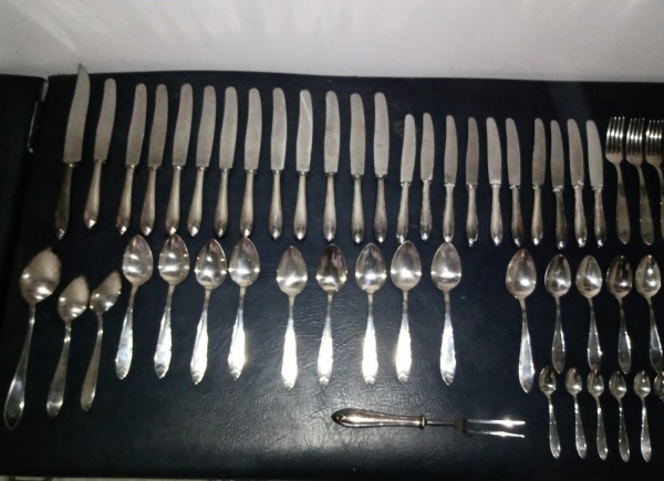 • Lindo e antigo faqueiro em prata com 97 peças,