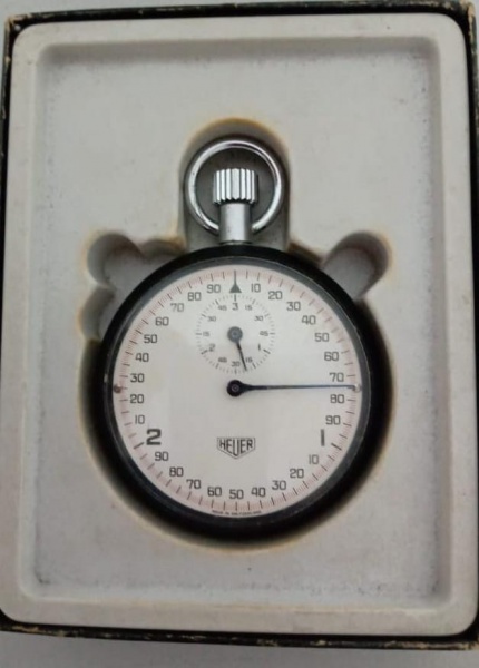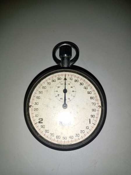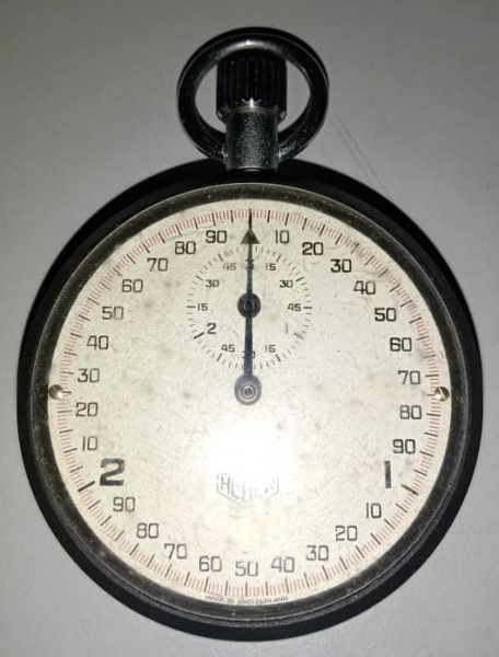 • Colecionismo, relógio cronômetro suisso, a corda, cx em níquel, mostrador em porcelana,