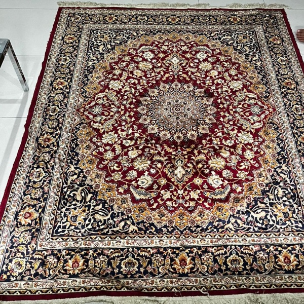 • Tapete  com inspiração Persa, nas cores predominantes marfim, marrom e vermelho, caramello com decoração floral. Medidas: 1,97x2,34 cm