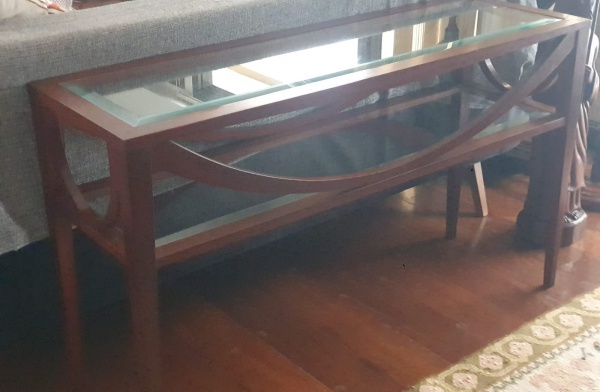 • Aparador em madeira, provavelmente jacarandá-da-bahia, com  vidro cristal bisotado- Medidas: 40x77x130 cm