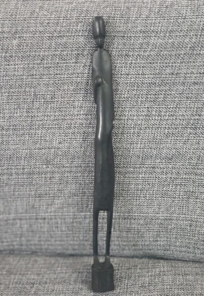 • Escultura de arte africana em madeira escura. Altura: 80 cm  base 12x11 cm