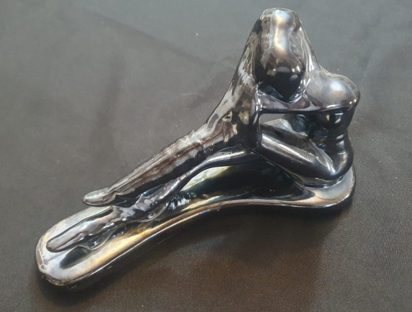 • Antiga estátua em cerâmica alusiva a mulher com pintura em bronze.. Pequena falha de pintura - Medidas: 24x9x14 cm