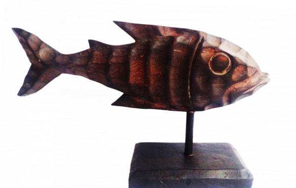 • Escultura de peixe em bloco de madeira ricamente esculpido. Medida 28x52cm.
