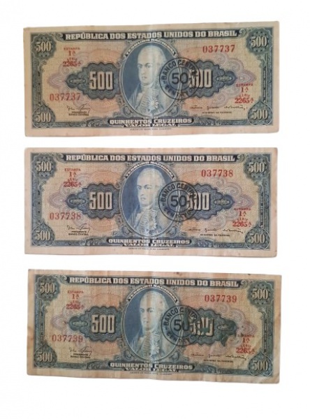 • Lote com3 (três) cédulas brasileiras de 500 cruzeiros.
