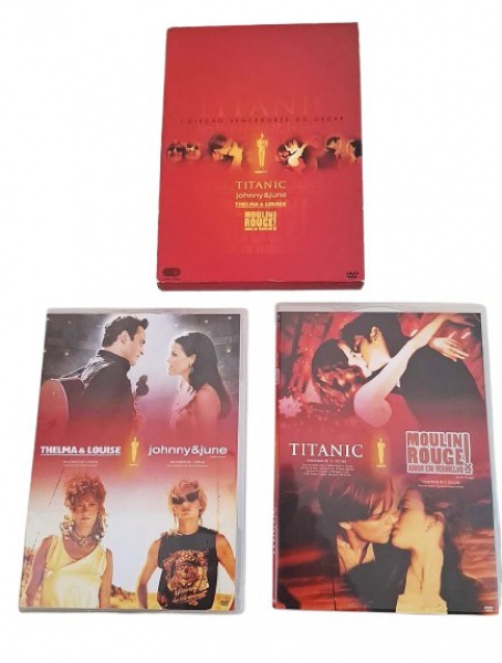 • Pack com 4 (quatro) DVDs de filmes premiados com Oscar. Titanic, Moulin Rouge, Thelma & Louise e Johnny & June.