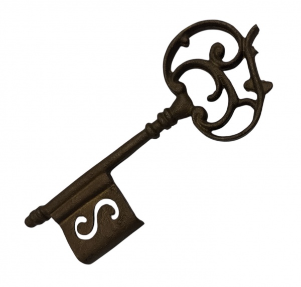 • Chave de parede decorativa em ferro, medindo: 28 cm comp.