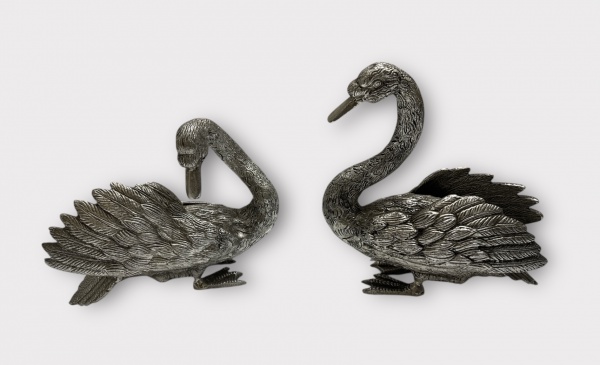 • Par de patos em metal prateado, medindo: 22 cm comp. x 20 cm alt.