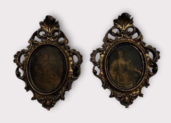 • Par de porta retratos em metal estilo Ingles, medindo: 34 cm x 27 cm