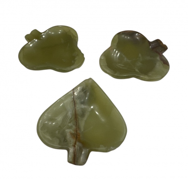• Lote contendo 3 cinzeiros de ônix, no estado, medindo: 11 cm comp.