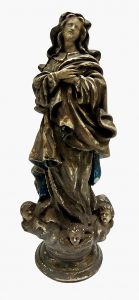 • Arte Sacra - Maravilhosa escultura em gesso policromada, representando Virgem Maria, medindo: 38 cm alt.