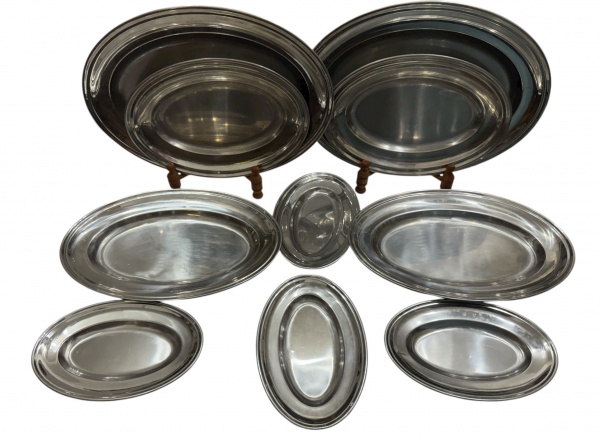 • Lote contendo: diversas travessas ovais de inox para servir tamanhos variados.