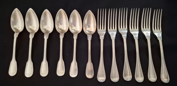 • Lote com 12 (doze) talheres de sobremesa de tamanho generoso da renomada marca francesa CHRISTOFLE. Veja foto extra.