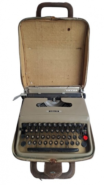 • Antiga Máquina de escrever Olivetti, modelo Lettera 22, acomodada em sua bolsa original. Funcionando.