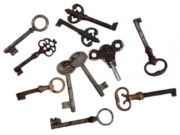 • Lote com 11 (onze) chaves antigas sendo uma para corda de relógio.