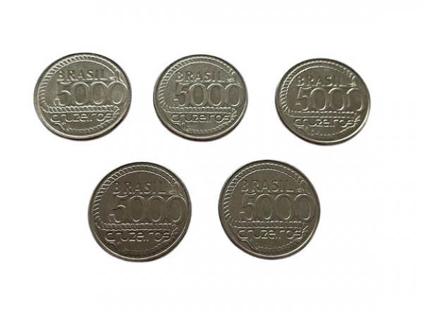 • Lote com 5 (cinco) moedas de 5000 cruzeiros em estado SOBERBA.