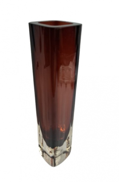 • Solifleur cúbico em grosso vidro de Murano, em técnica "sommerso" em  que envolve camadas de cores suspensa no vidro transparente. Medidas Apresenta um pequeno lascado e arranhado. Medidas 31x7x7 cm.