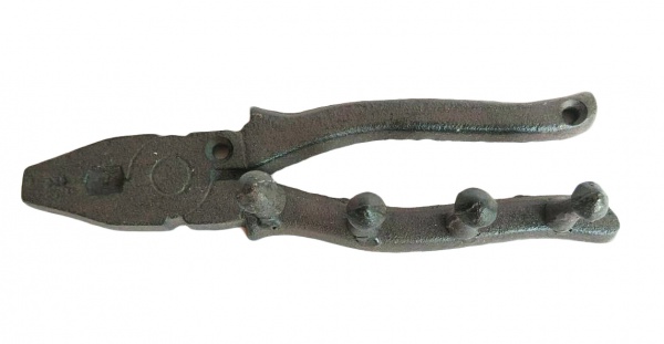 • Cabideiro de ferro fundido na forma alicate com quatro ganchos.