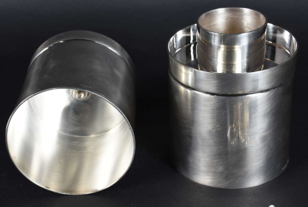 • SAINT JAMES GELEIRA EM METAL ESPESSURADO A PRATA. BRASIL SEC. XX. 19 de altura 20 CM de diâmetro