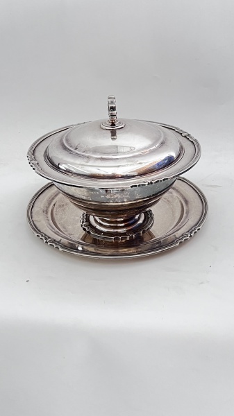 • conjunto de sopeira e, presentoir metal espressurado a prata Eberle " alpaca " solpeira medindo 32 de diâmetro e presentoir 36 de diâmetro