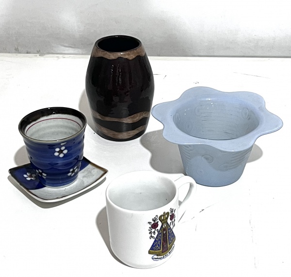 • 4 pecas de sendo tres  de porcelana e uma de vidro na cor zul
