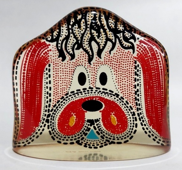 • ABRAHAM PALATNIK  Escultura cinética representando cabeça de cachorro em resina de poliéster de manufatura Abraham Palatnik. Medindo 7,3 cm de altura por 8 cm de comprimento.