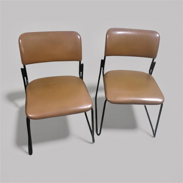 • ESCRIBA: PAR DE CADEIRAS DE FERRO ESTOFADAS EM COURINO , NA COR CARAMELO MED. 52 X 45 X 80 CM DE ALT