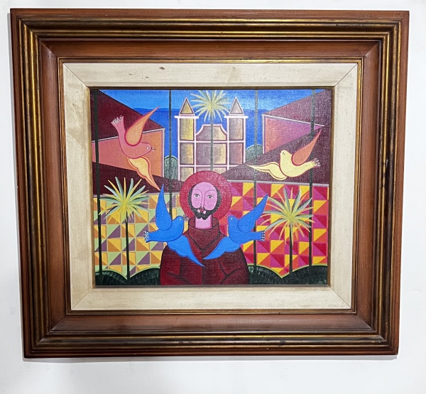 • ADELSO FILADELFO DO PRADO óleo sobre tela medindo 50 x 61 com moldura 78 x 67 . Pintor e desenhista. Autodidata, começa a desenhar aos treze anos, copiando imagens religiosas e igrejas da sua cidade. Realiza, em 1960, a 1ª Convenção dos Artistas Locais e inaugura o painel da Biblioteca Pública Monteiro Lobato, em Vitória da Conquista. Em 1977, inaugura o painel do Salão Nobre da Tribuna de Honra do Estádio do Maracanã, no Rio de Janeiro.